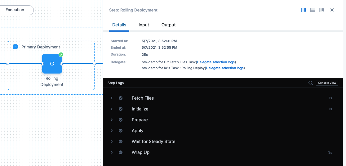 That's it. Harness will perform the Canary and Rollout steps using your manifests and artifacts.