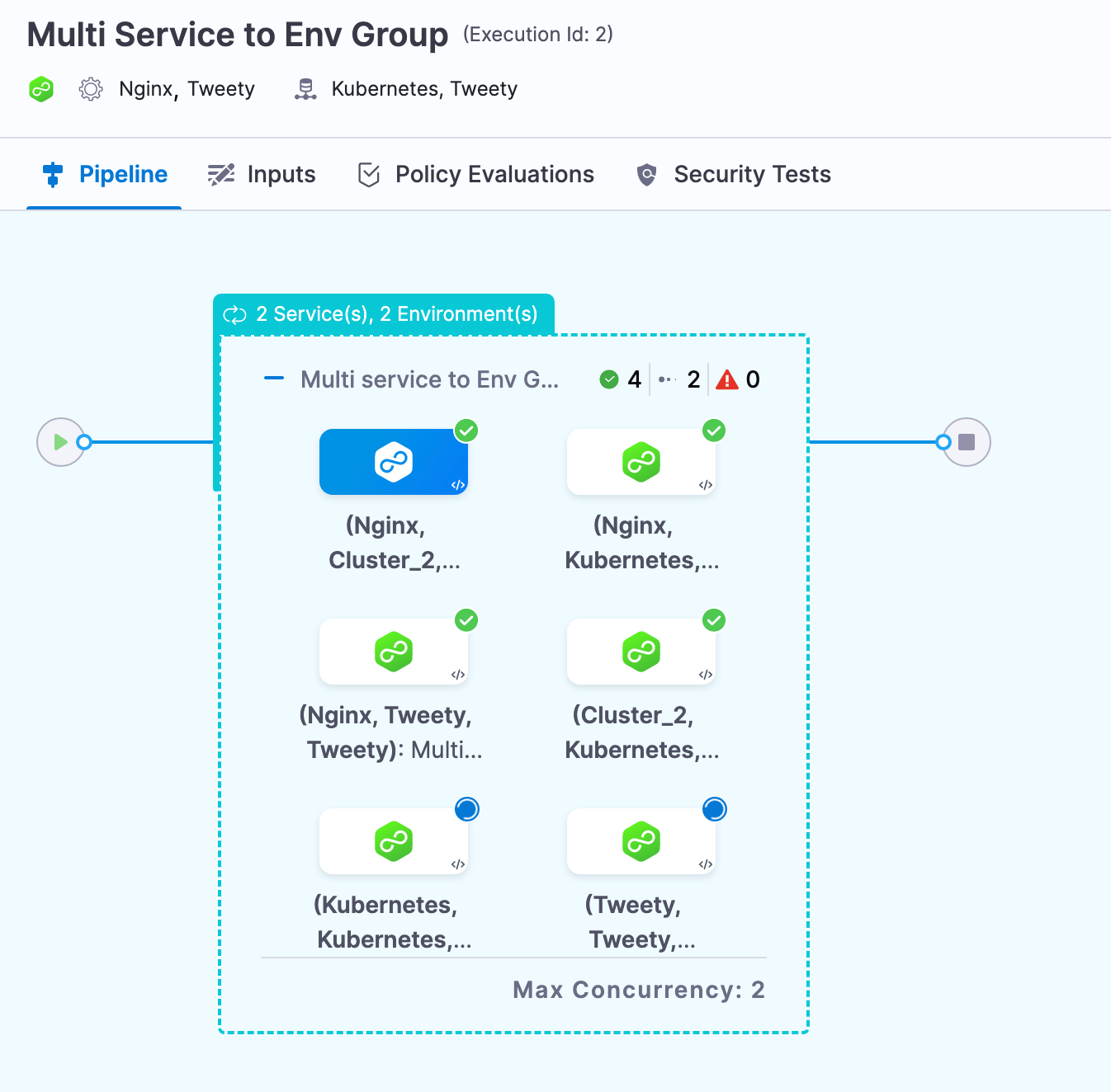 - If you select Deploy to Environments or Infrastructures in parallel, Max concurrency is equal to the number of environments or infrastructures.