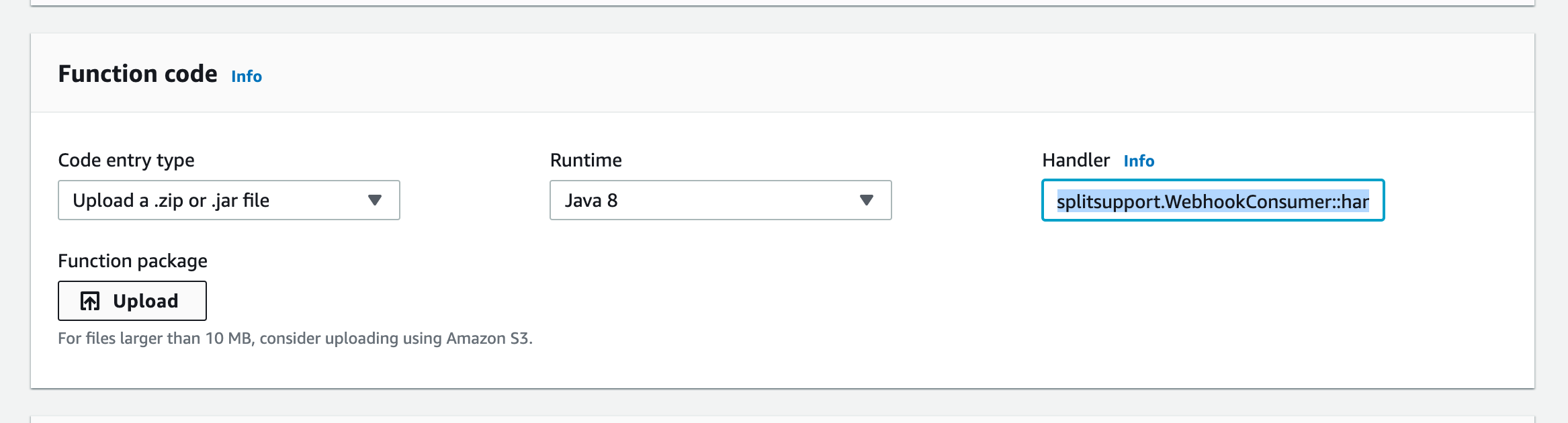 splitsupport.WebhookConsumer::handleRequest. Then, upload the JAR file you just created: