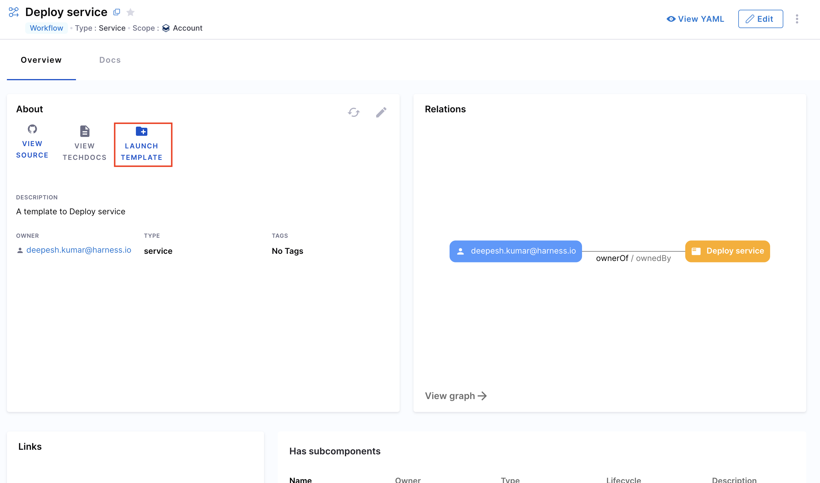 - From the Catalog, select the desired Workflow and click View YAML.