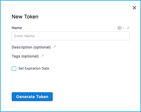 - Enter a Name for the token. Description and Tags are optional.