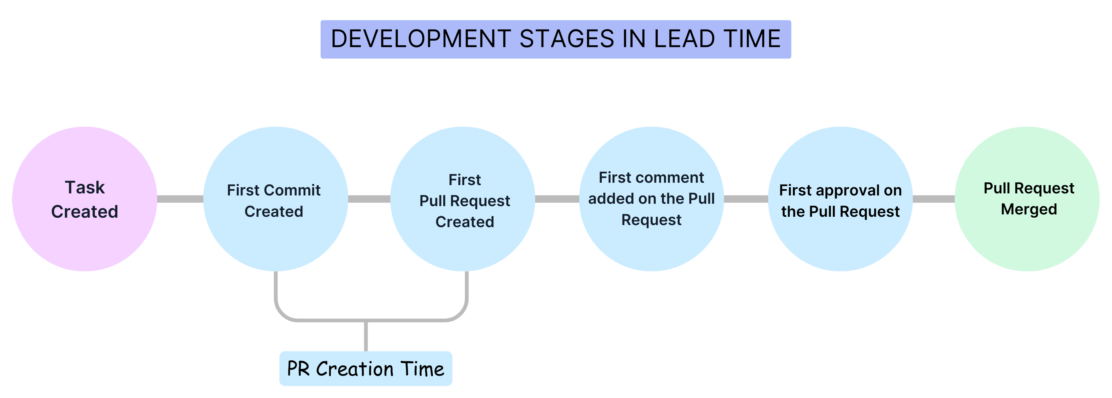 The specific events or stages considered in a lead time calculation depend on the report and the stages defined in the associated [Workflow profile]/docs/software-engineering-insights/propelo-sei/setup-sei/sei-profiles/workflow-profiles/velocity-profile). The lead time ultimately depends on the stages that a PR or issue actually goes through. For example, if there are no comments on the a, then the time to comment is zero.